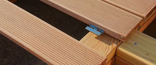 • Скрытый способ. Используются специальные клипсы или кляймеры, которые фиксируют доску сбоку. Визуально настил выглядит аккуратнее, крепеж полностью скрыт. Этот вариант чаще выбирают для террас и веранд.