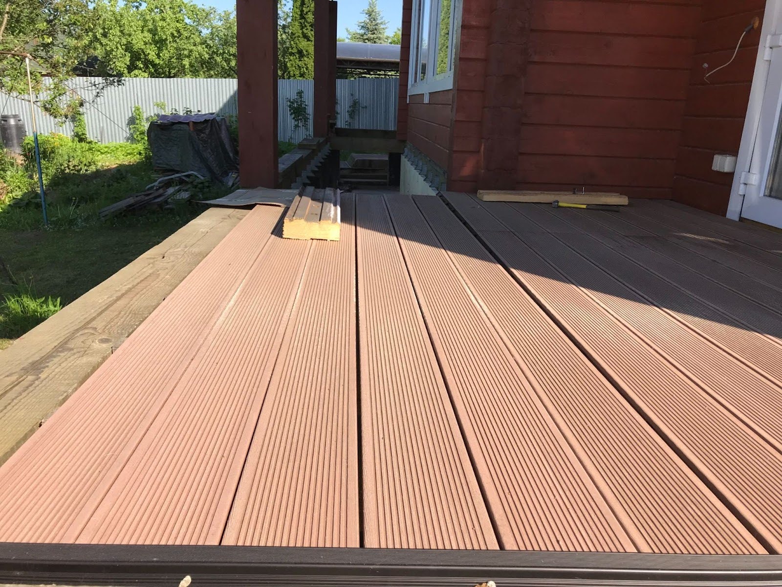 Совет: после завершения работ настил лучше промыть водой, чтобы убрать пыль и следы от монтажа. Уже через сутки террасой или крыльцом можно пользоваться.